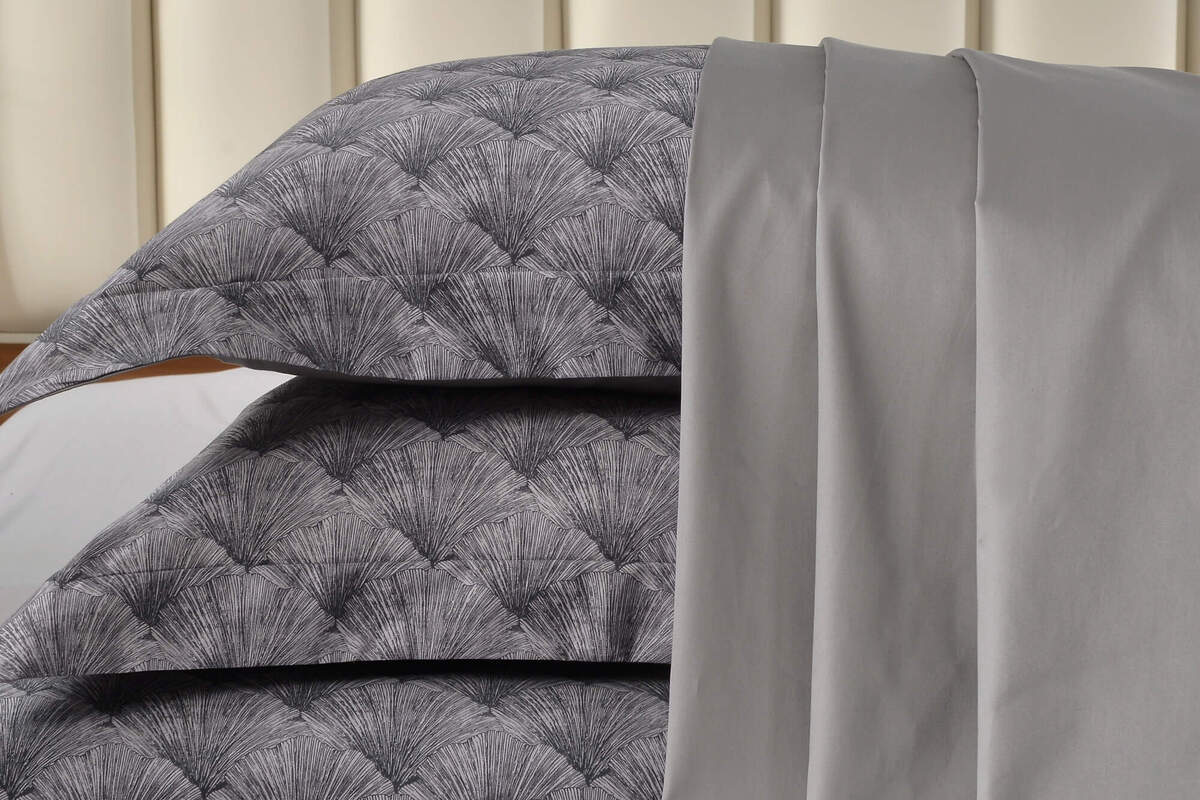 Изящный пошив с ушками 5см на наволочках и пододеяльнике. Лицевая сторона – принт, обратная сторона – однотонный макосатин глубоких цветов, что делает комплект сбалансированным, ста